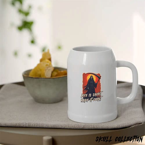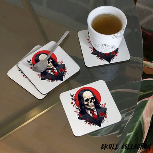 Dans le même style, ou pour compléter votre cadeau mug tête de mort, nous avons aussi des tasses et des bouteilles isothermes qui permettent de garder un café bien chaud ou une boisson super fraîche durant l’été. Elles sont également d’excellentes idées cadeaux. De même, découvrez les chopes à bière, le bocal à cocktail, et même des sous-verres tête de mort exclusifs pour protéger la table et aportez une touche gothique ou sombre à votre décoration d’intérieur.
